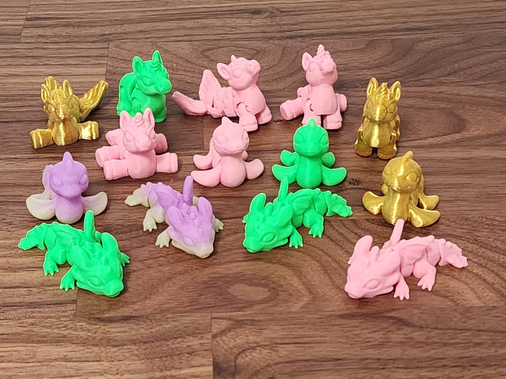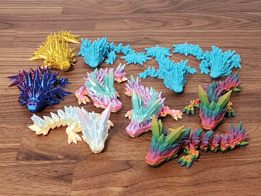 A selection of various articulated 3D prints, yes! this includes dragons!